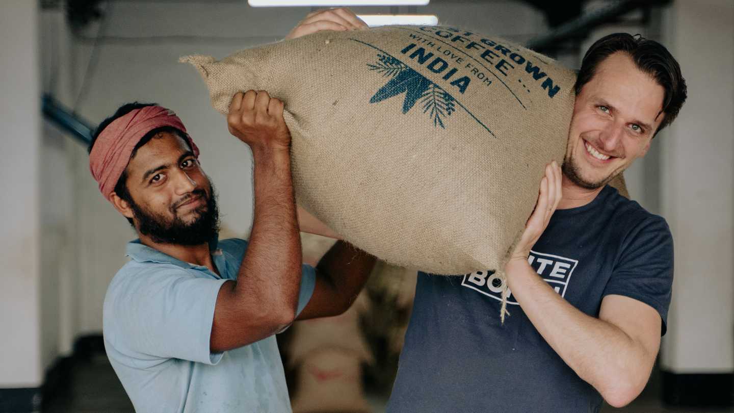 JB: “Door in het begin wat e-mails te sturen naar India. Mijn zakenpartner en ik hadden uitgezocht dat de koffie die we lekker vonden daar vandaan kwam. Hij kocht zijn bonen bij een Nederlandse importeur en brandde die thuis met een hobby brander. We besloten dat we dit op grotere schaal wilden aanpakken. Met het idee om een abonnement te verkopen, waarmee mensen altijd vers gebrande bonen in huis hebben. Het grappige is dat ik al na een dag antwoord kreeg op mijn e-mail naar India. Van Ronald uit Nederland. Hij werkte voor de koffieproducent en kon mij verder helpen.”