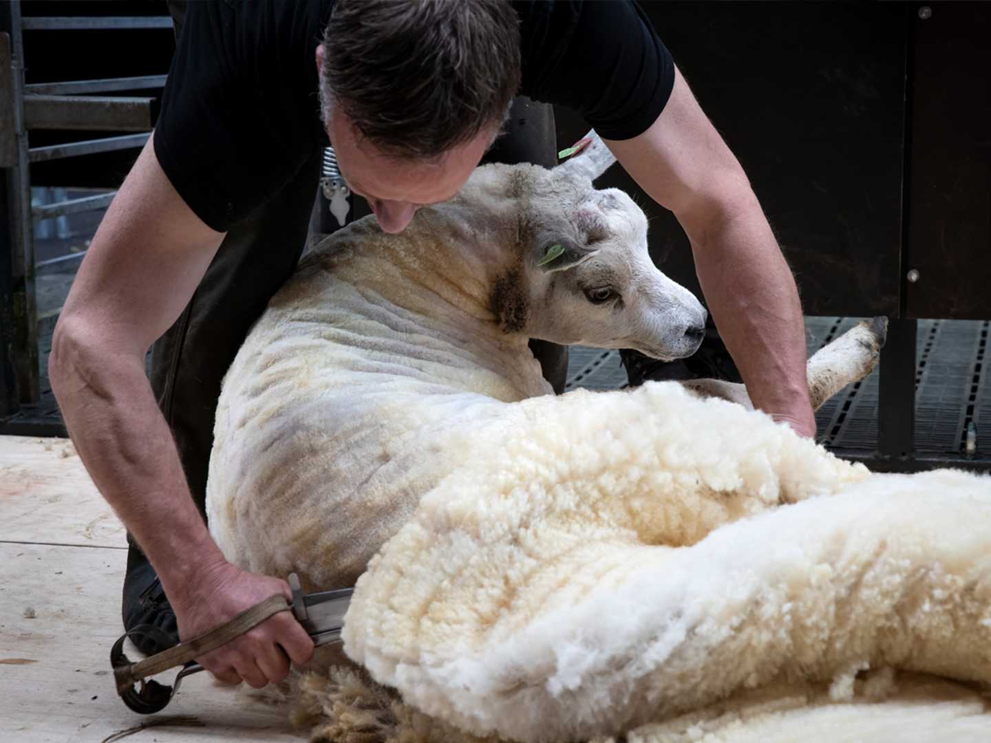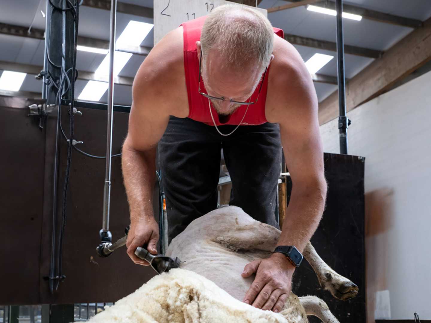 Schaapscheren is heel zwaar werk. ‘Ik ben nu 39, geen idee hoe lang ik dit nog doe. Maar met een goeie techniek wordt het werk lichter.’
